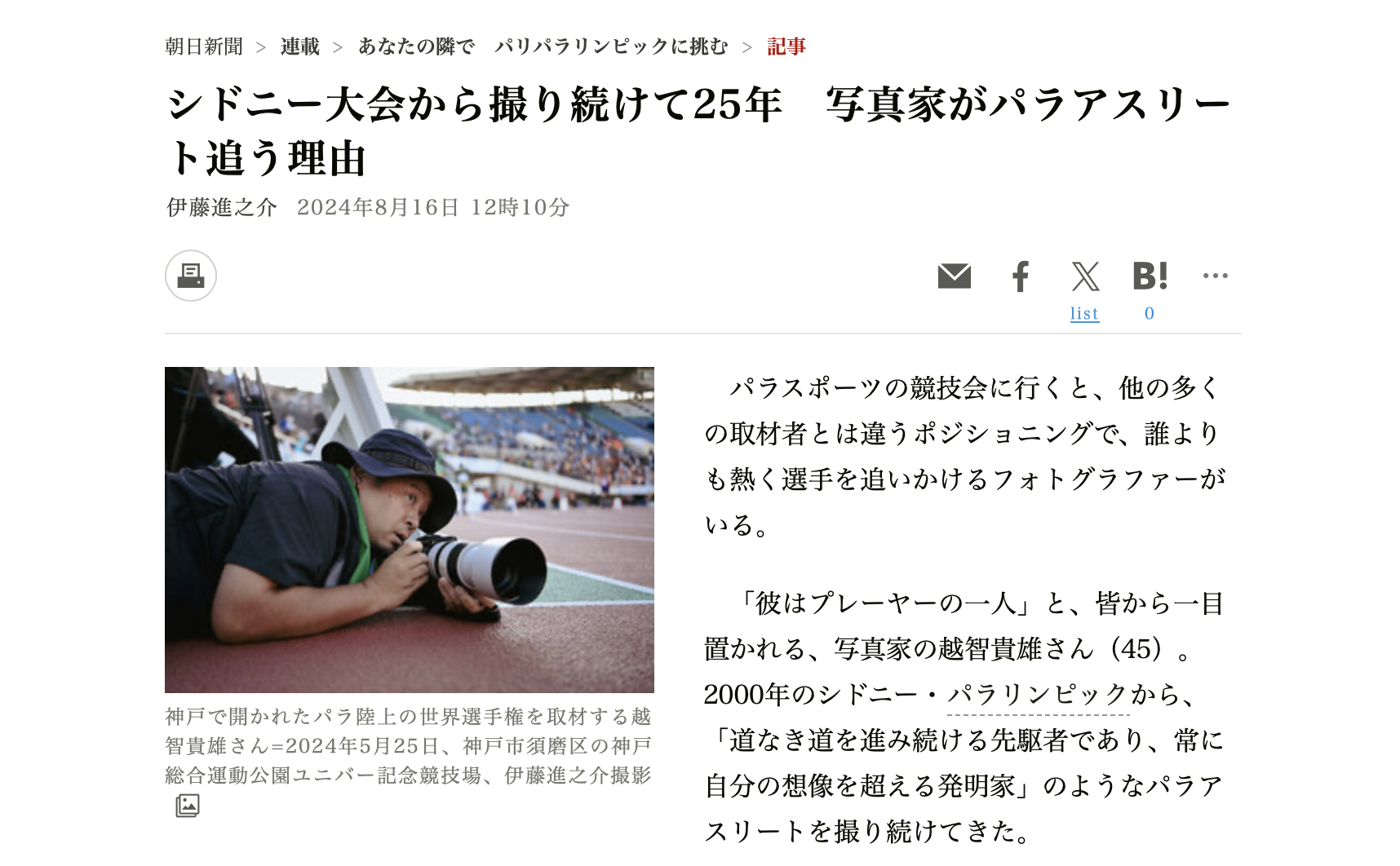 朝日新聞WEB掲載『選手が撮影の「伴走者」』